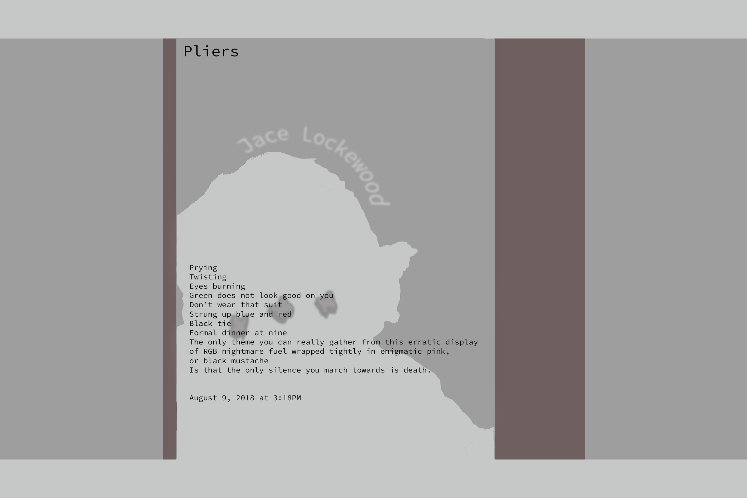 Pliers is a fun poem about expectation. (Also, this was a challenge of mine to base a poem off the Markiplier persona.)