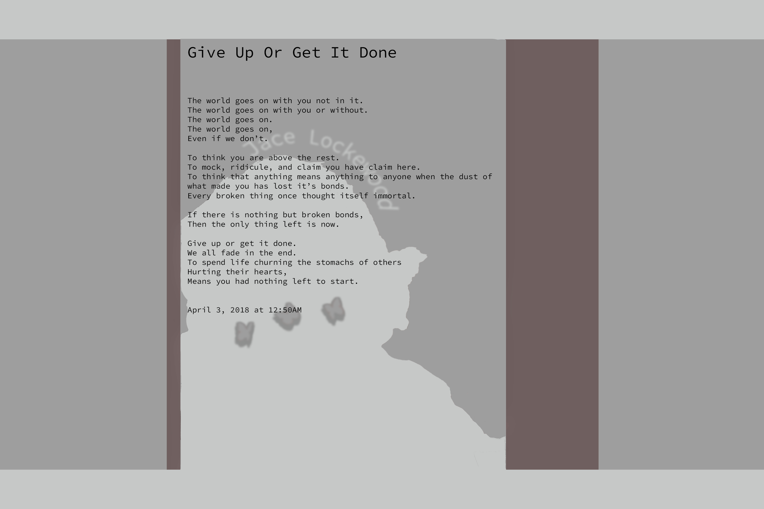Give Up Or Get It Done is the character’s reaction to the previous poem.